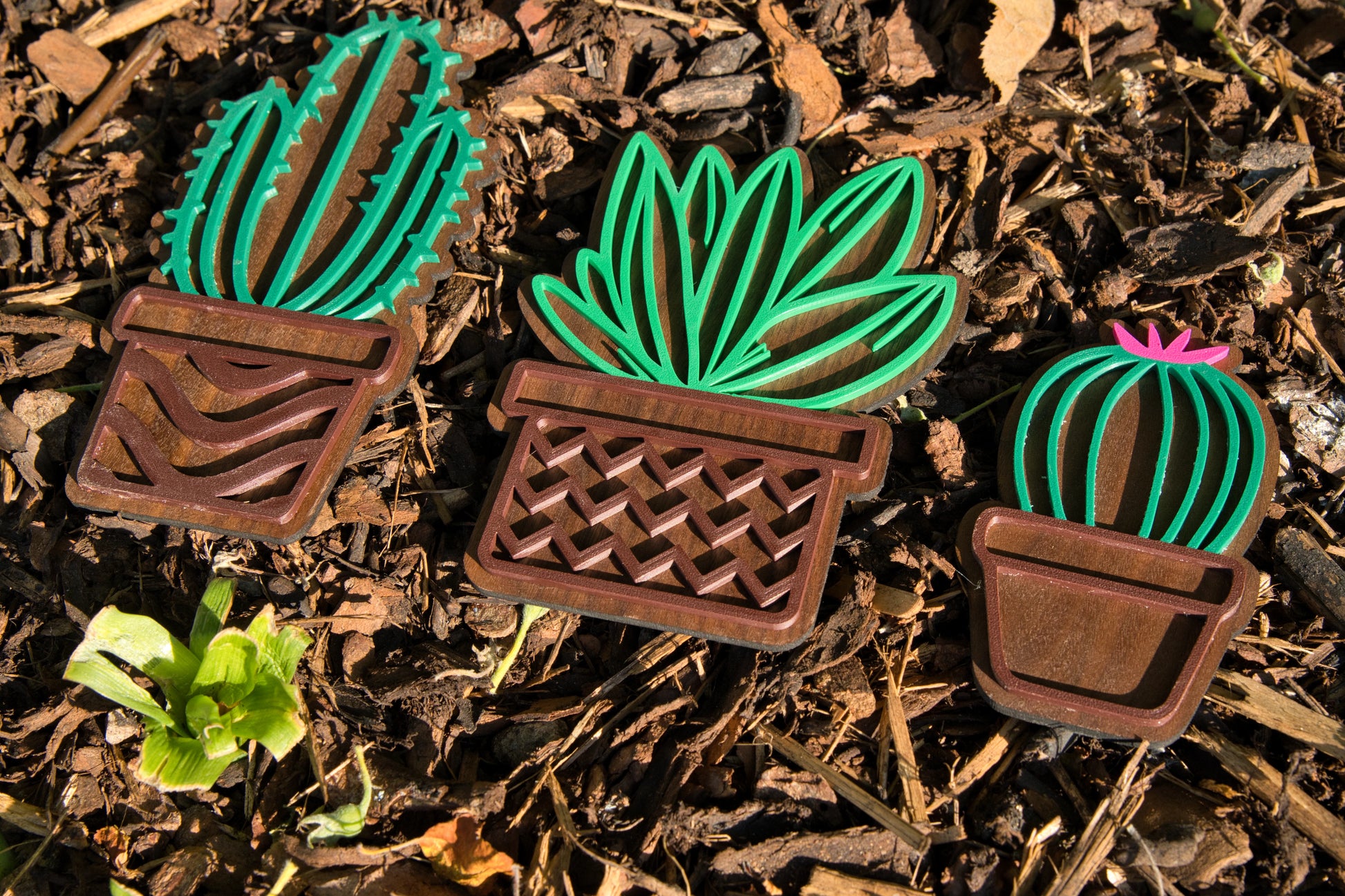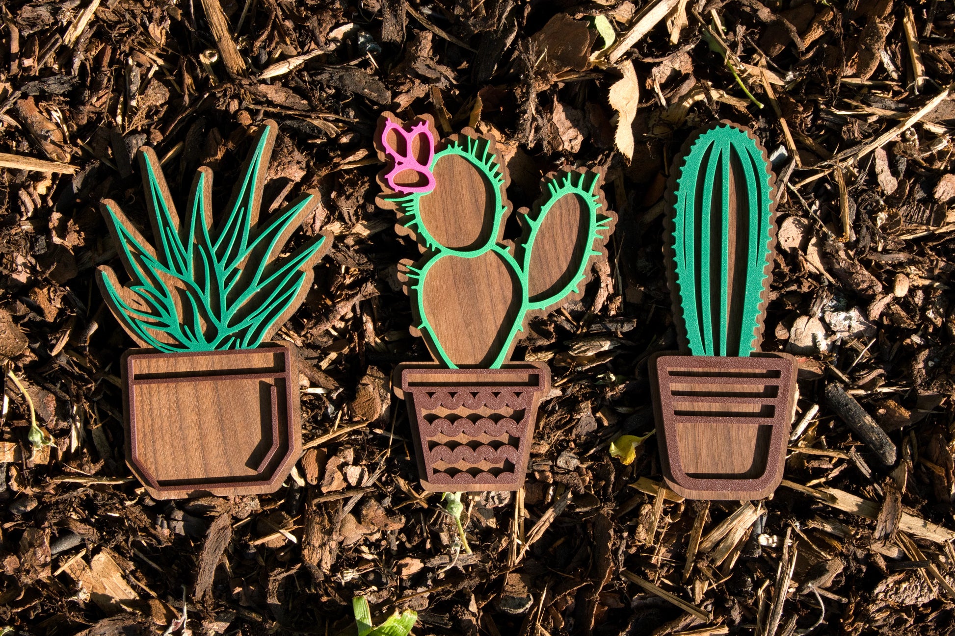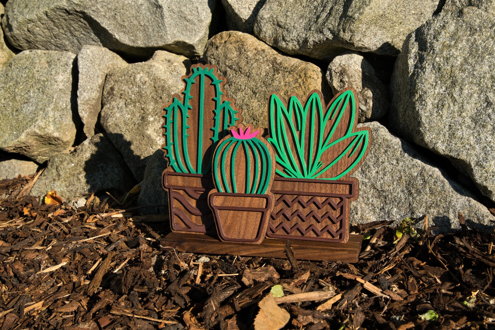 Jeder Topf und die Basis werden präzise aus edlem Walnussholz gelasert, während die Kakteen selbst mit einem 3D-Drucker gefertigt und auf die Holzelemente gesetzt werden. Das Ergebnis: Eine spannende Kombination aus traditionellem Material und moderner Fertigung.