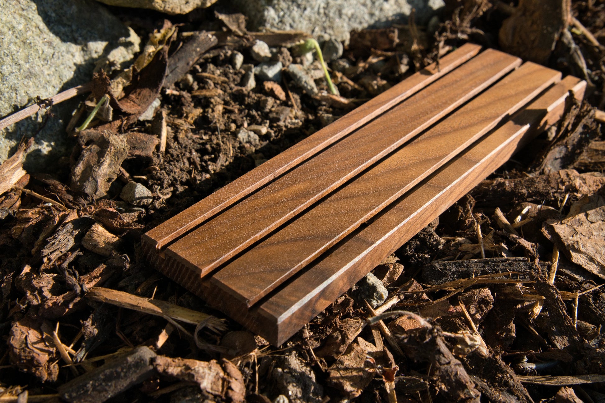 Material: Lasergeschnittenes Walnussholz (geölt) + 3D-Druck (biobasierter Kunststoff, PLA)