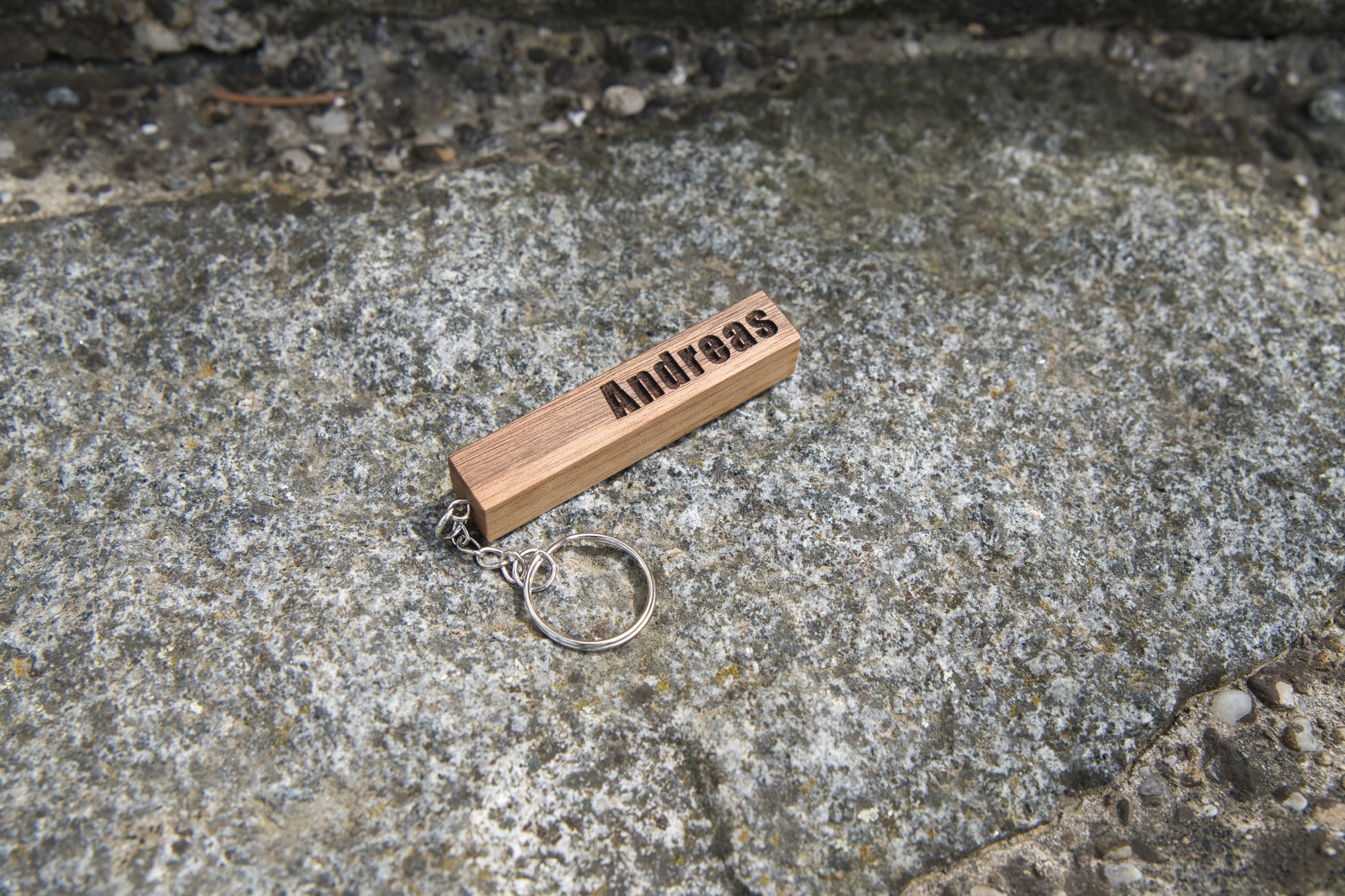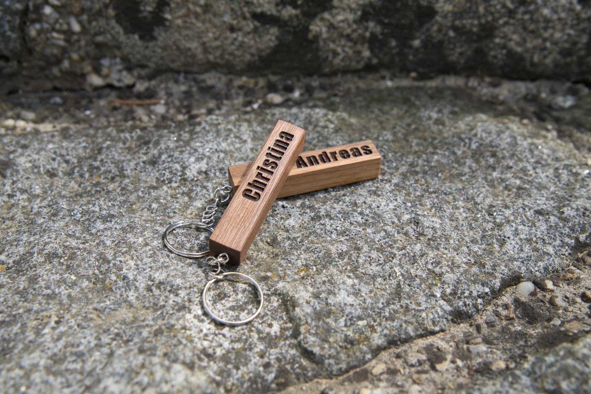 Personalisierter Schlüsselanhänger aus edlem Walnussholz