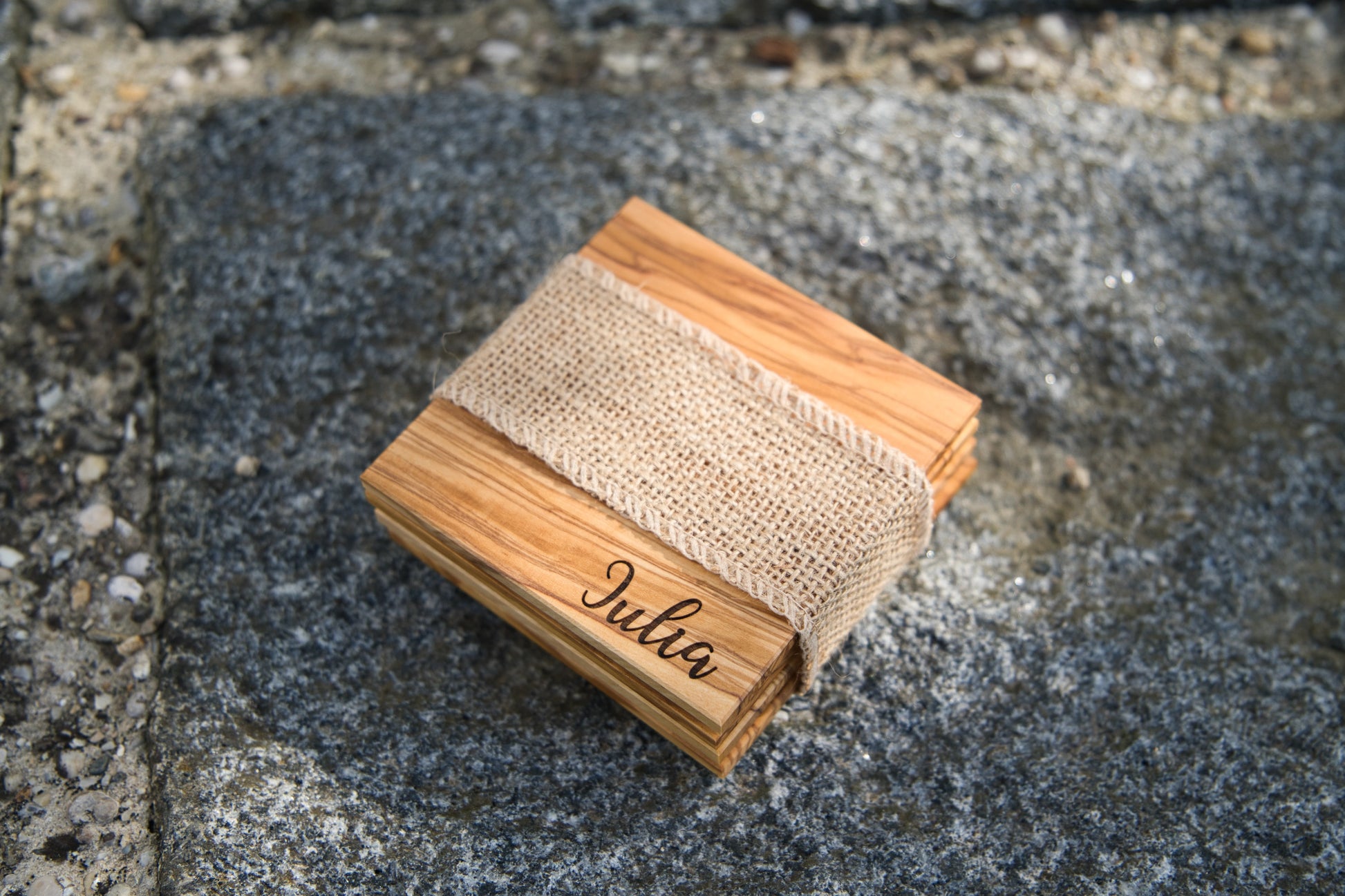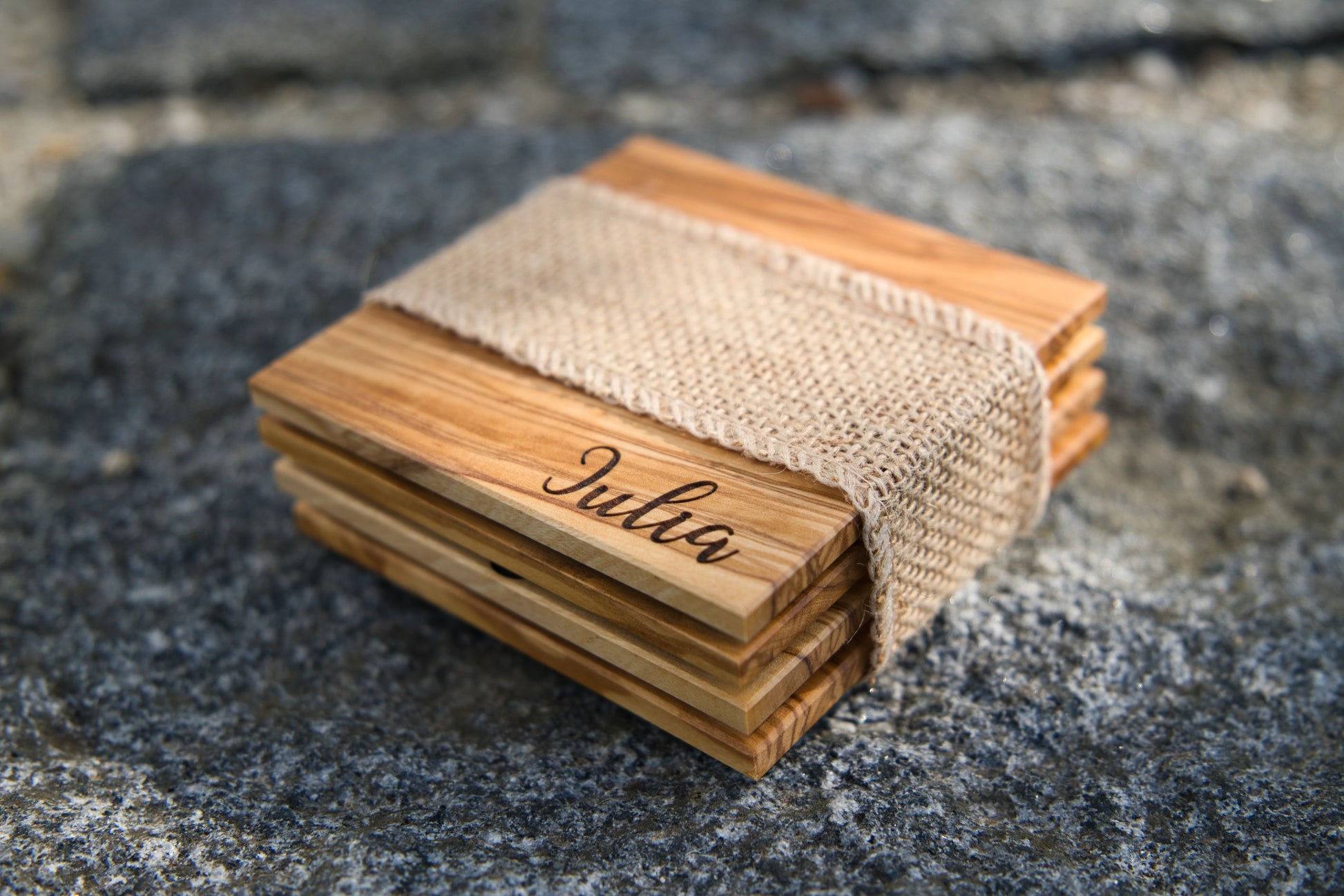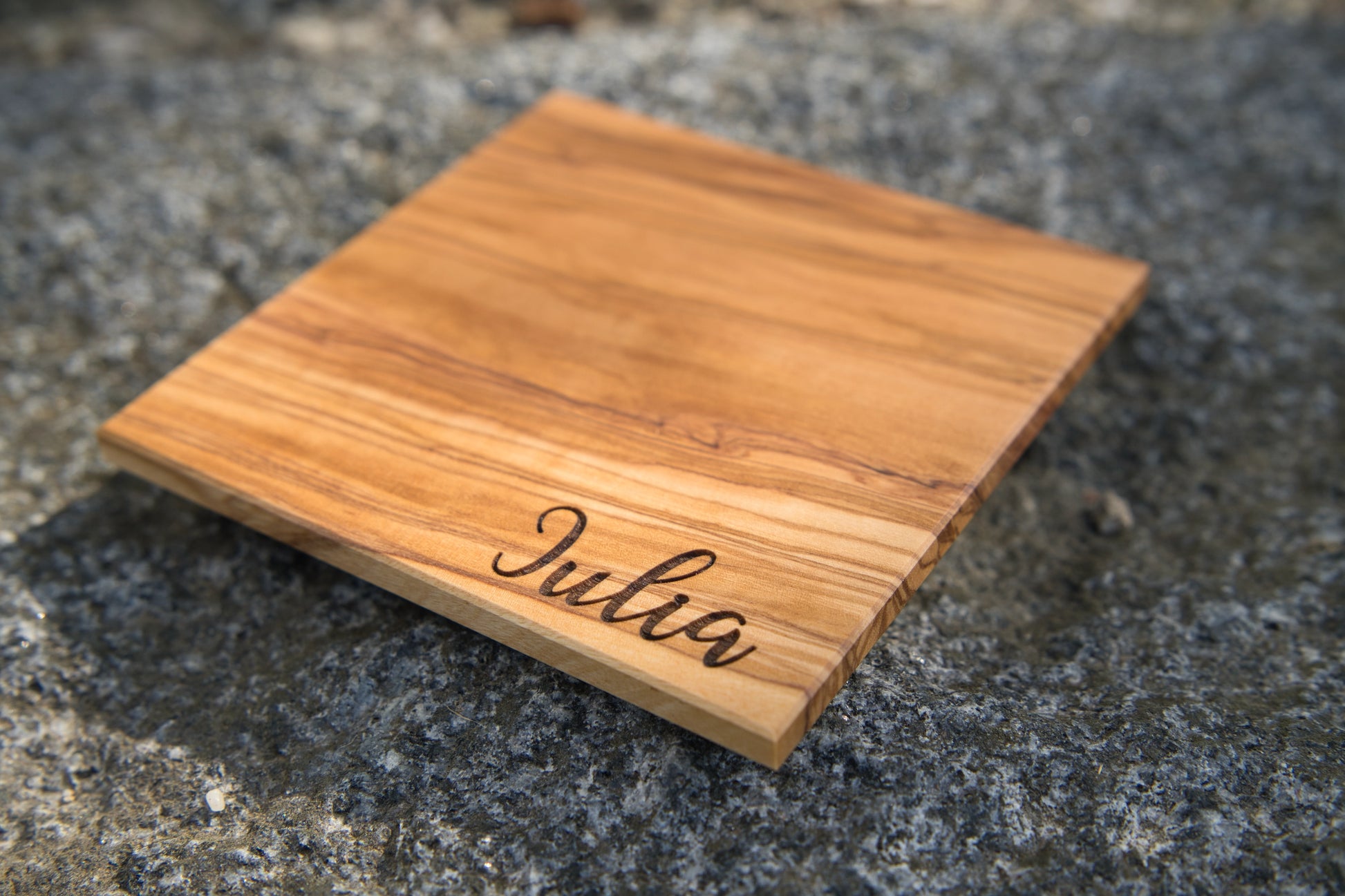 Personalisierte Untersetzer aus Olivenholz